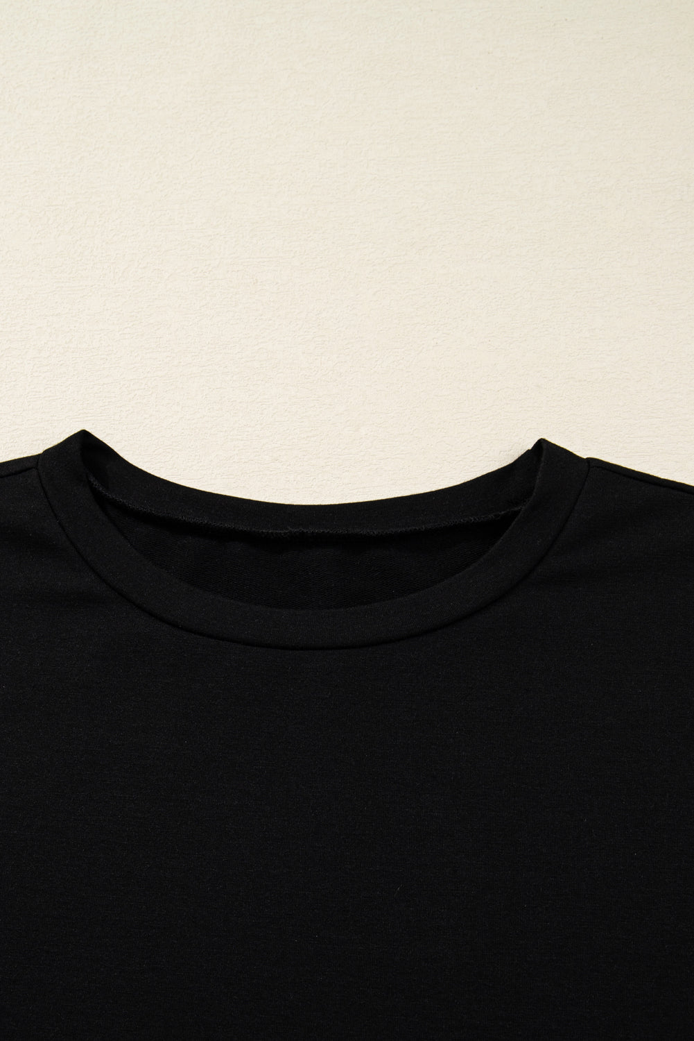 Plus Size Black Bow Knot Patchwork Crewneck Blouse