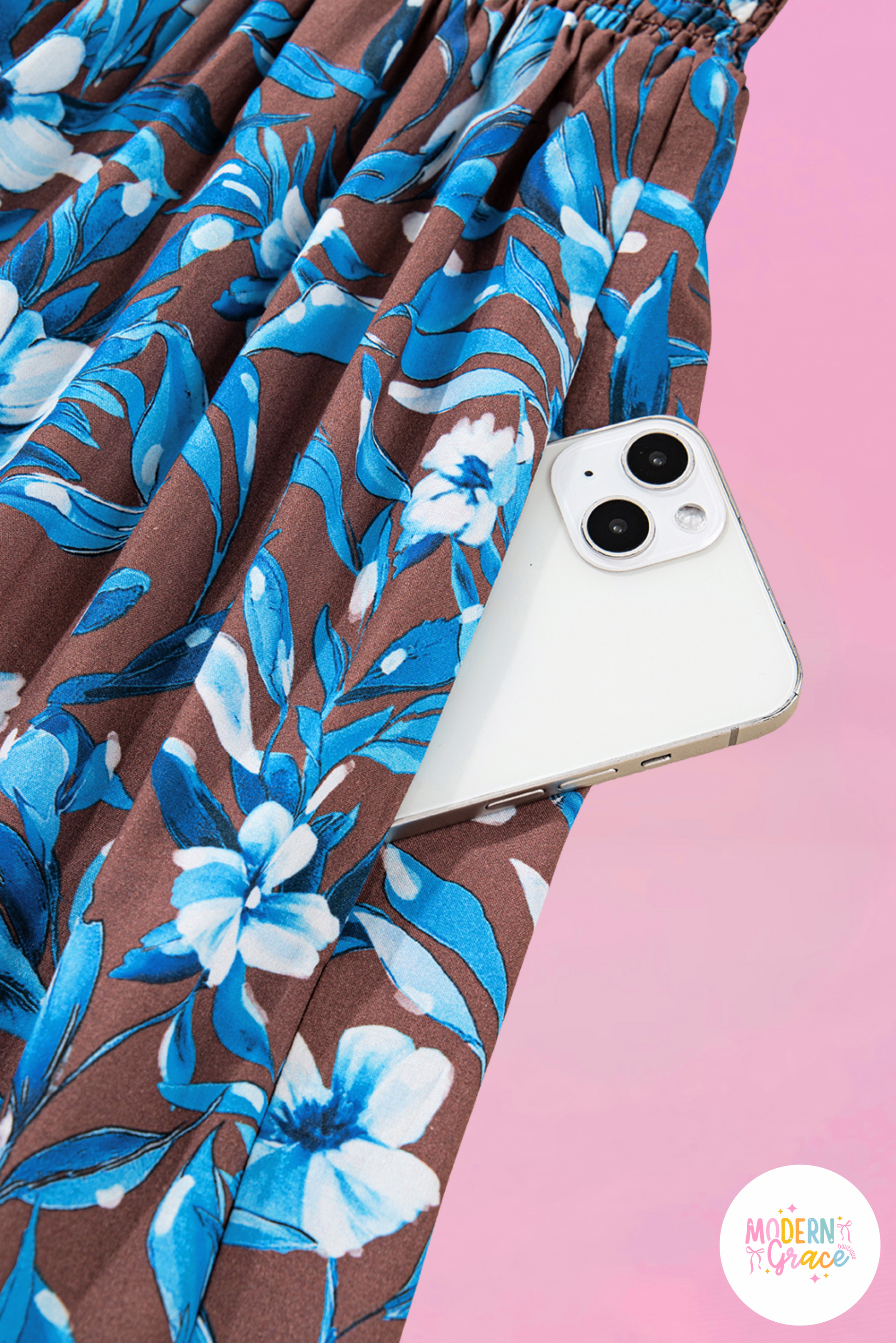 Step into sunshine and smiles with this Blue Smocked Bodice High Waist Ruffled Sleeve Floral Dress. The smocked bodice hugs your shape while the high waist flatters your figure, all topped off with playful ruffled sleeves and a cheerful floral print. Perfect for twirling through gardens or brightening up any day!