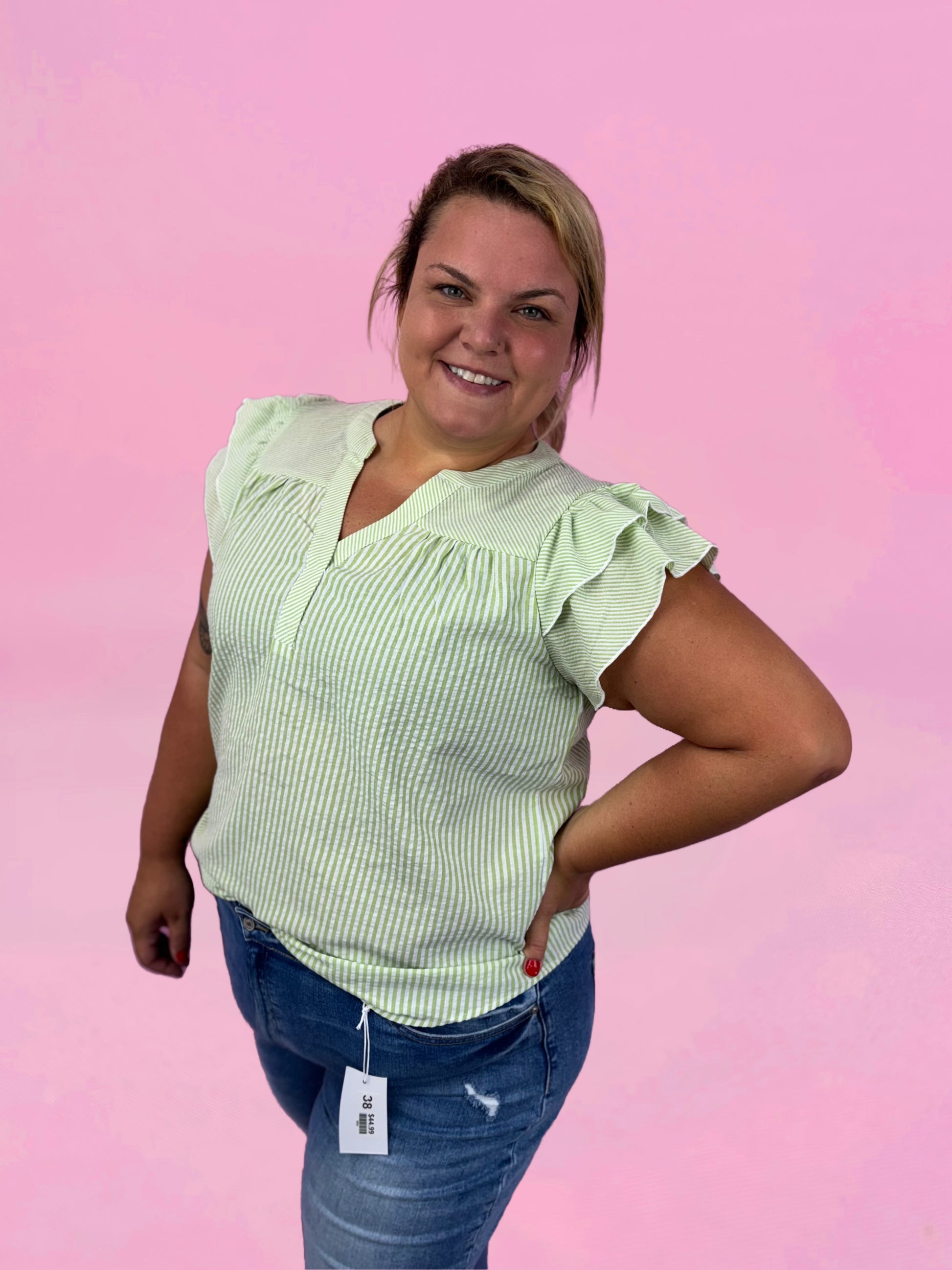 Add a splash of fun to your wardrobe with this Curvy Light Green Striped Top! Its fresh light green stripes bring a cheerful vibe, while the flattering fit celebrates your curves with confidence. Perfect for sunny days or casual outings, this top combines comfort and style in a playful way that’s sure to brighten your look.