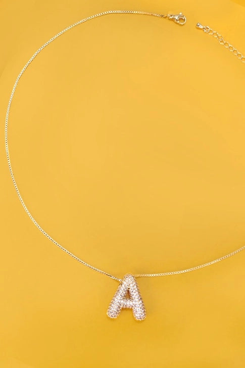 Gold Bubble Rhinestone Bubble Balloon Initial Necklace