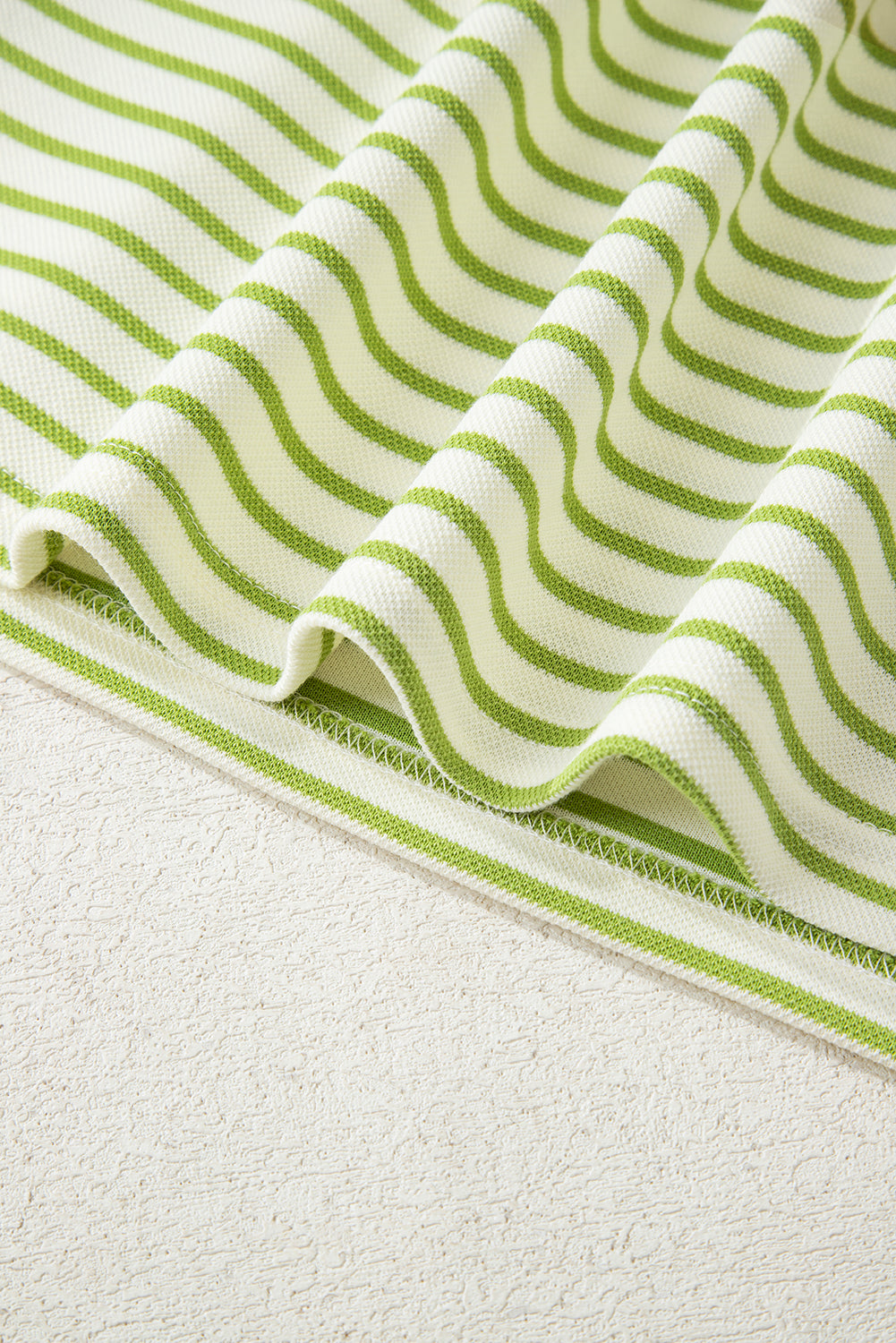 Green Stripe Collared V Neck Drop Shoulder Pullover and Skort 2pcs Outfit (Warehouse Exclusive)
