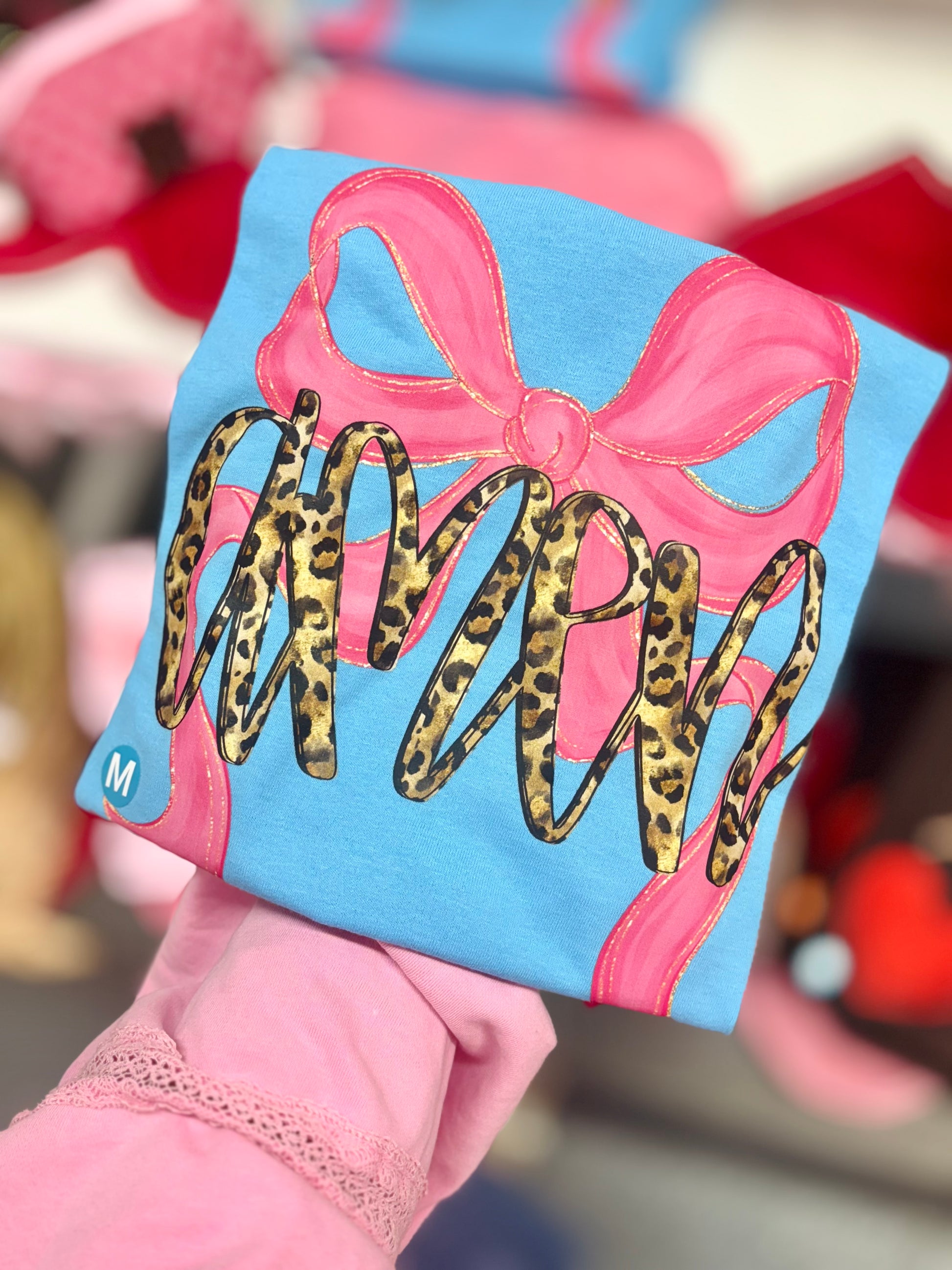 JTH Blue Amen Leopard Bow T-Short Sleeve Shirt
