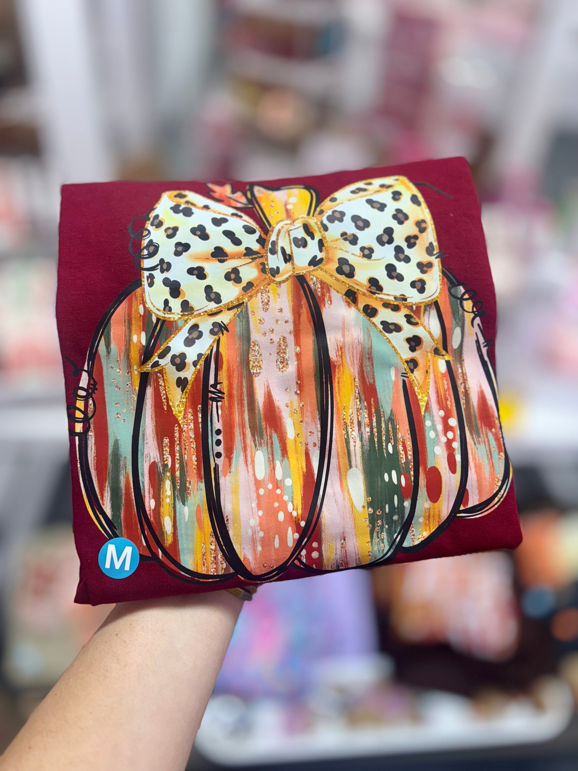 JTH Maroon Leopard Bow Pumpkin T-Shirt