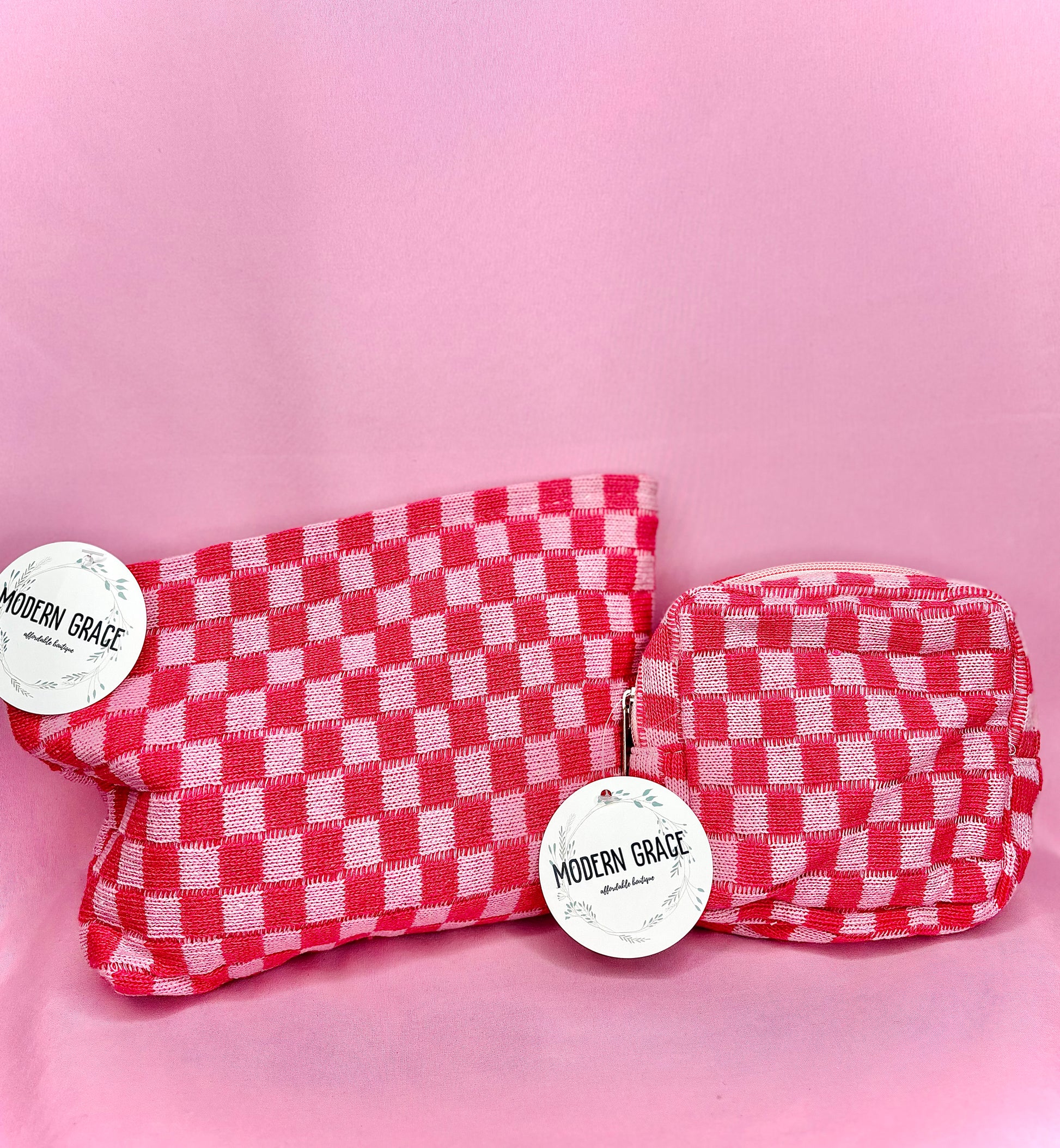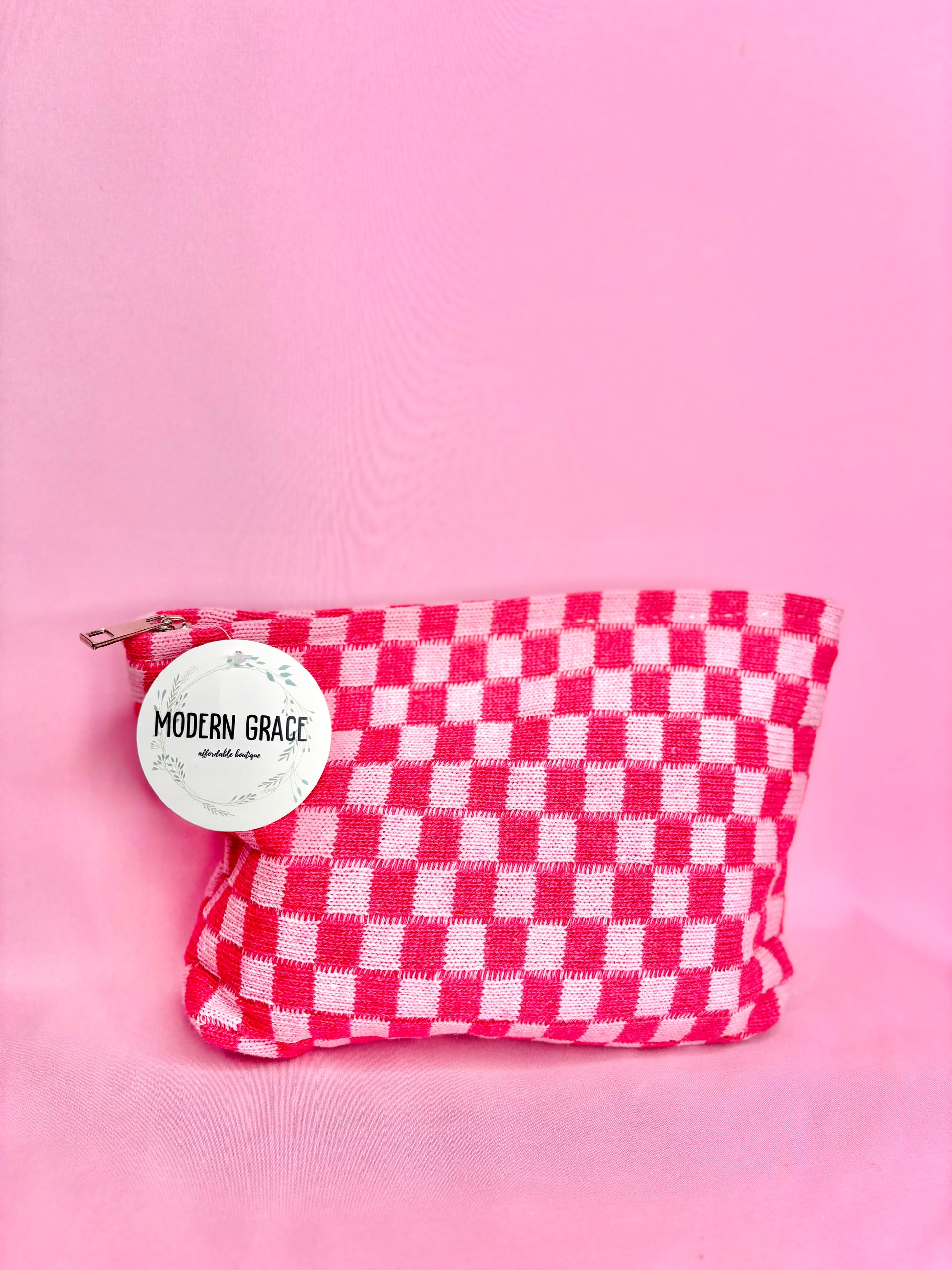 Get ready to slay with our Pink Checkered Cosmetic Makeup Pouch Clutch Bag! This stylish and compact bag is perfect for storing all your makeup essentials on-the-go. Its pink checkered design adds a touch of fun and fashion to any outfit. Grab yours now and stay fabulous!