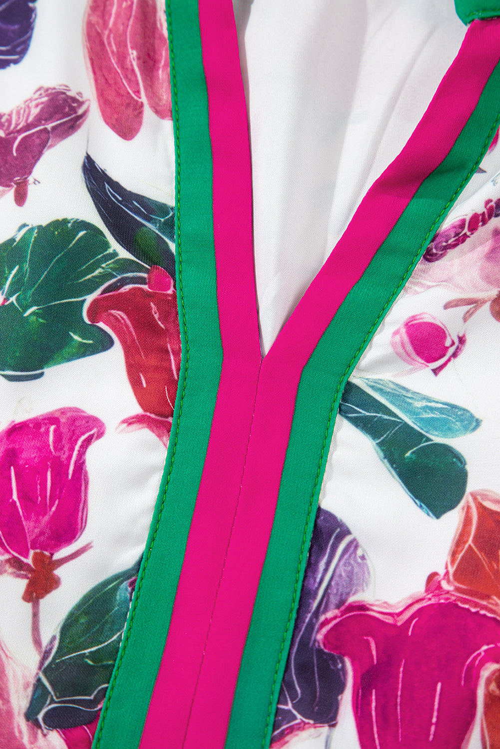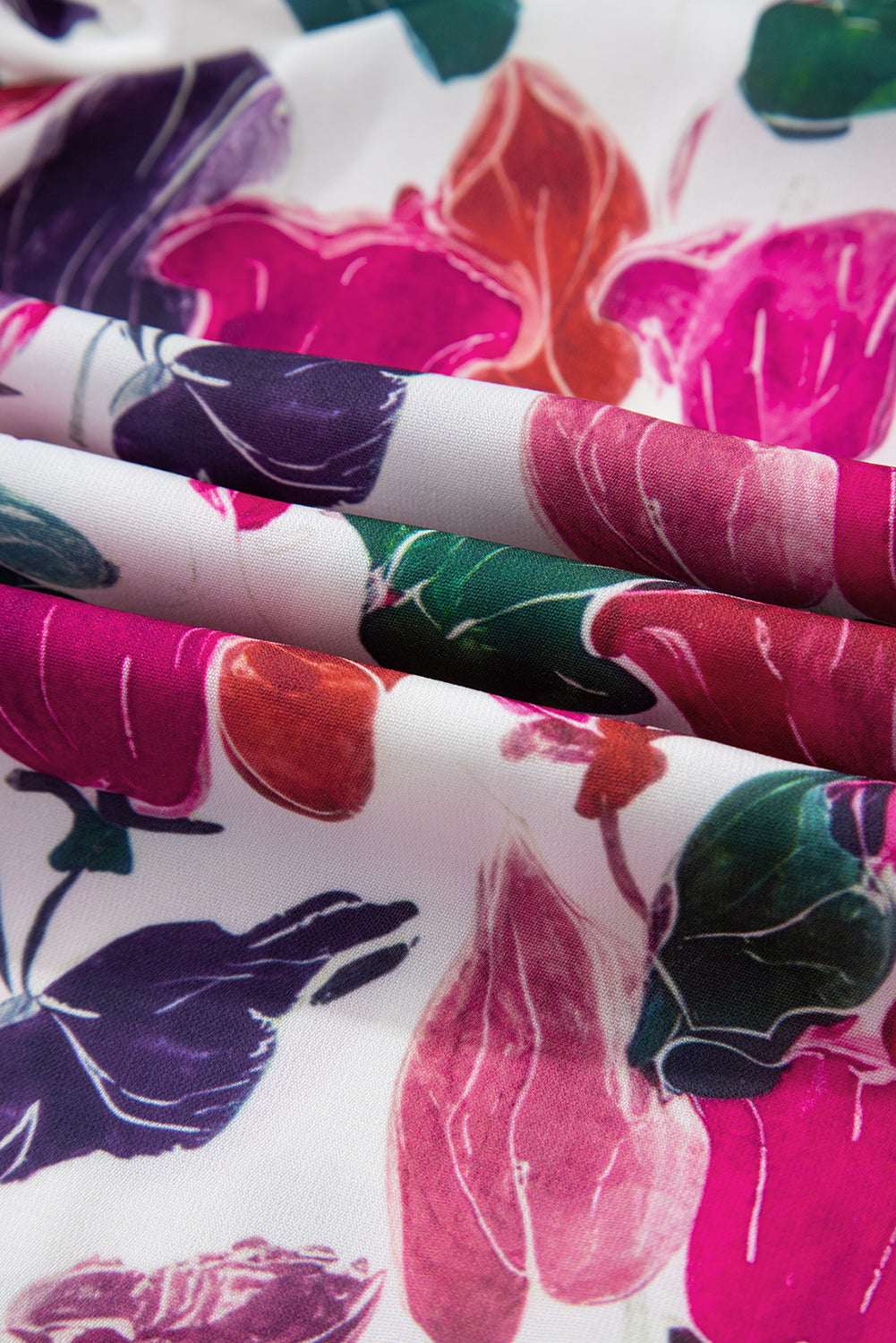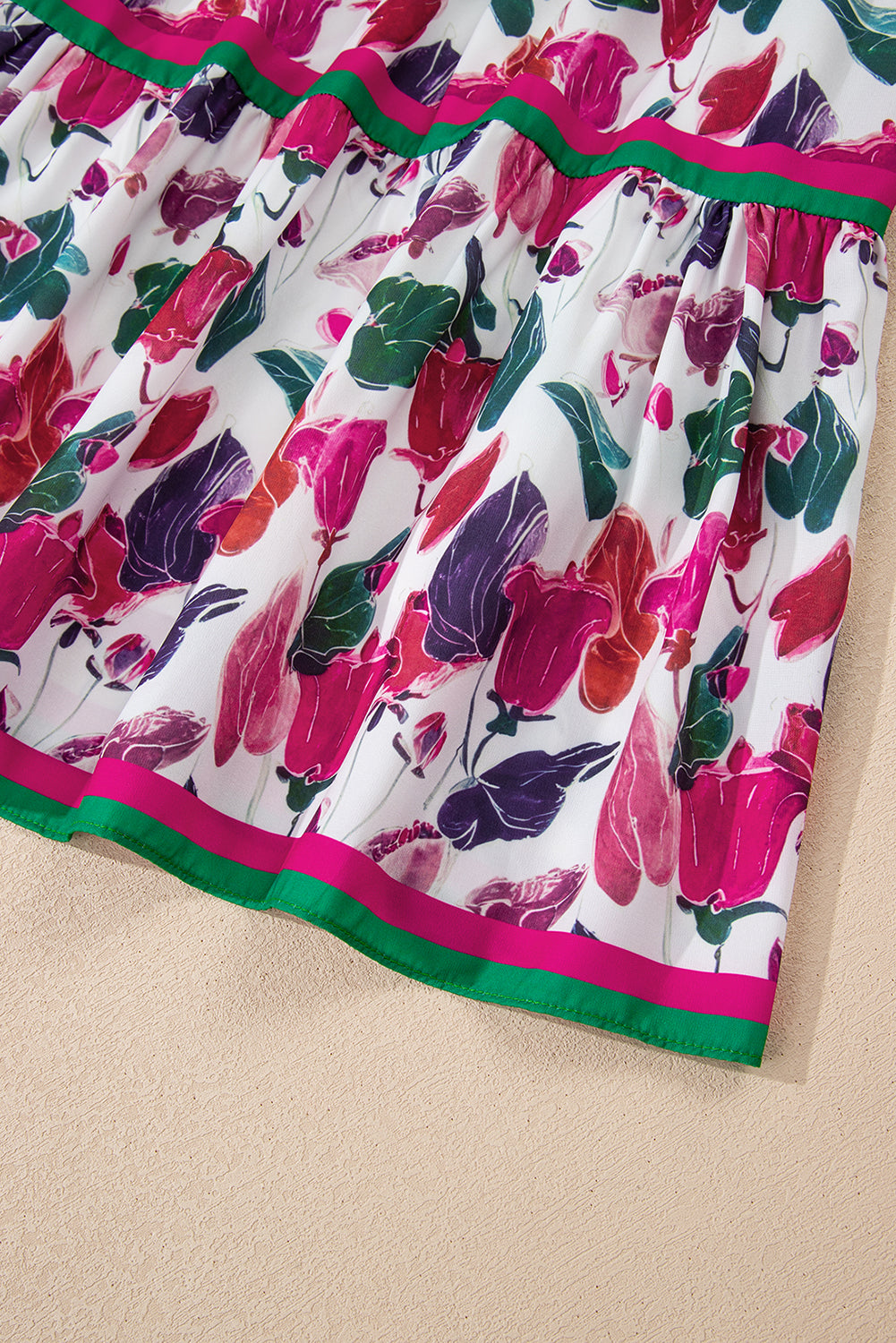 - Eye-catching floral print with contrast striped detail for a chic mini dress look.