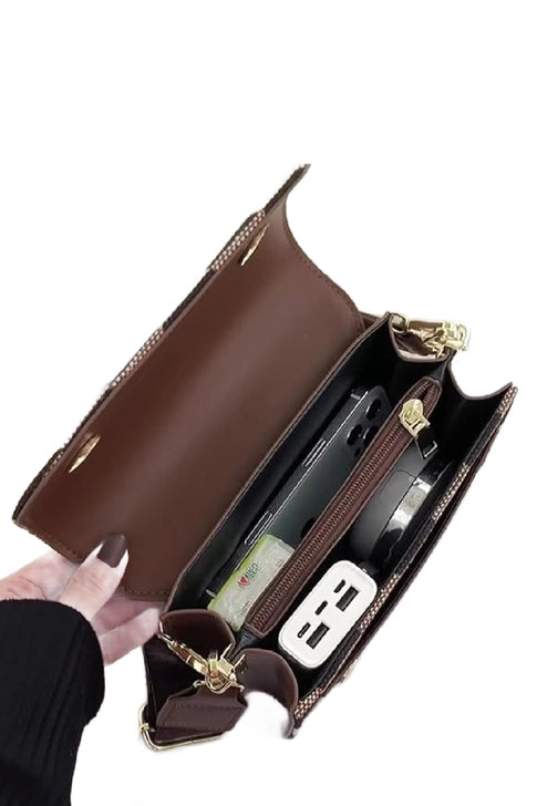 This Upcycled Checker Chained Crossbody Bag is a stylish mix of durability and flair. Crafted from high-quality, dirt- and wear-resistant fabric with vegan leather accents, it’s lined with soft polyester for a comfy feel. Measuring 7.5" L x 3.3" W x 5.9" H, it offers two roomy compartments, an interior zipper pocket, and an exterior patch pocket to keep your essentials organized. Switch up your look with two detachable straps—a chic chain for a satchel vibe or a casual nylon strap. Plus, authentic Louis Vuitton material adds a unique, upcycled touch to the front and chain.